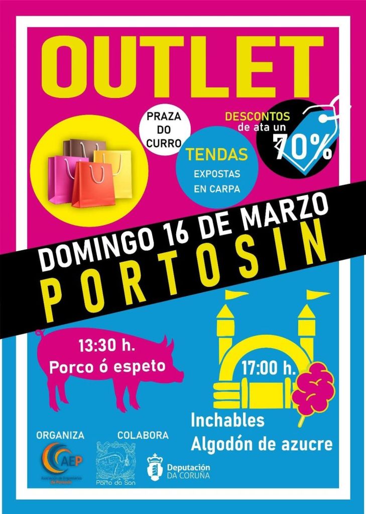 Este domingo 16 de marzo a Asociación de Empresarios de Portosín celebra o seu Outlet. Será na Praza do Curro dende pola mañá.