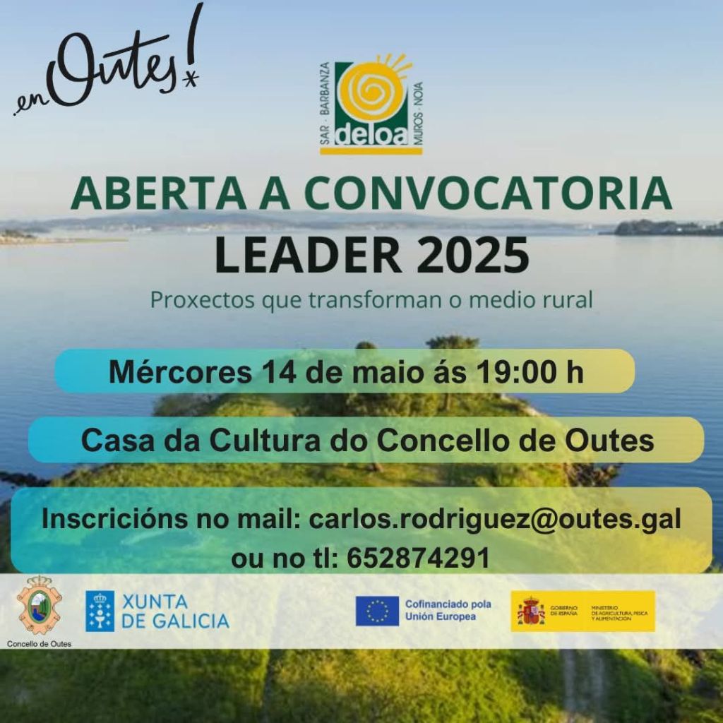 Outes, 13 de maio de 2025 — A asociación DELOA desprazarase ao municipio de Outes para presentar as axudas da convocatoria LEADER 2025, unha oportunidade clave para persoas emprendedoras, pequenas empresas e entidades que queiran impulsar proxectos con impacto económico, social e ambiental na comarca.